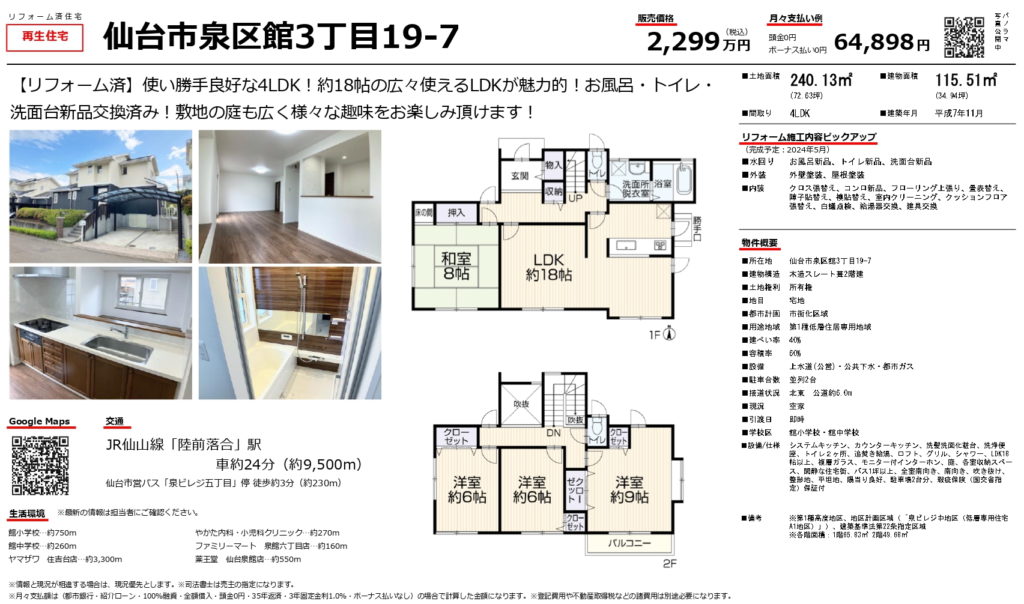 リノベーション物件!ペット飼育可!仙台駅へ徒歩7分♪ 物件概要 写真
