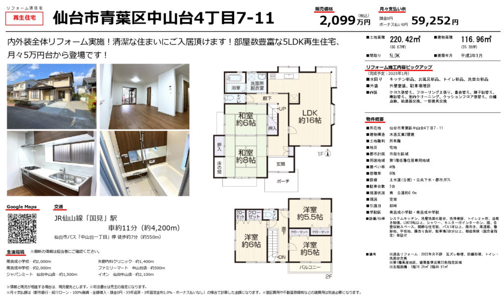 【中山台】5LDK 2,099万円
