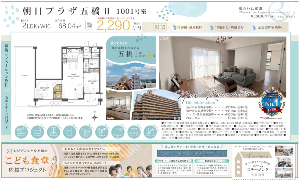 リノベーション物件!角住戸!五橋駅へ徒歩8分♪
