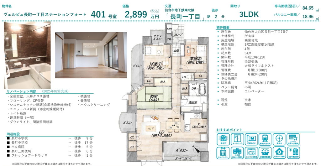 リノベーション物件!角住戸!長町一丁目駅へ徒歩2分♪