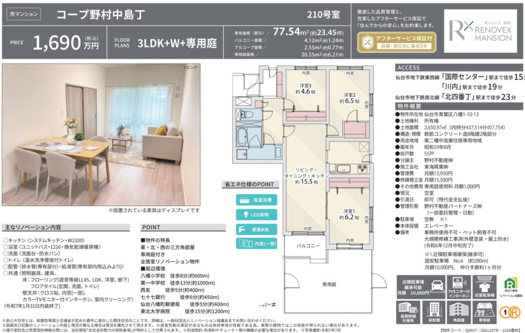 【八幡】コープ野村中島丁 3LDK 1,690万円