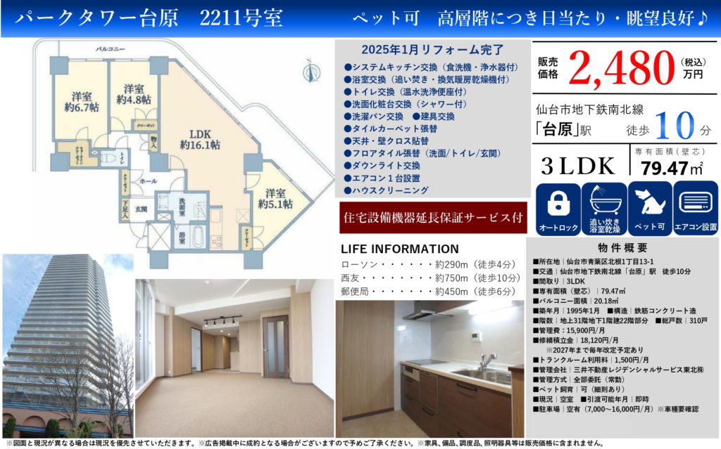 リノベーション物件!ペット飼育可!仙台駅へ徒歩7分♪ 物件概要 写真