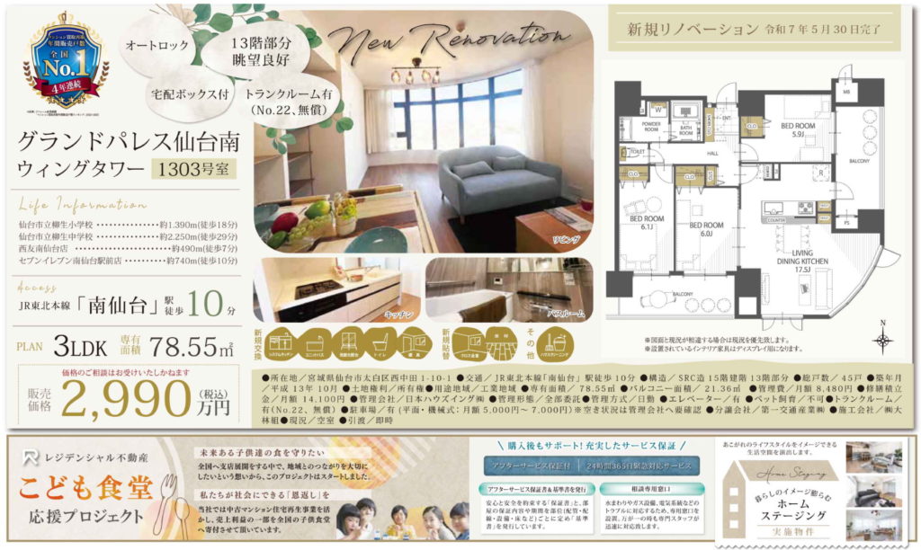 【西中田】グランドパレス仙台南ウイングタワー 3LDK 2,990万円