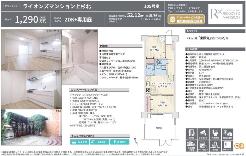 【梅田町】ライオンズマンション上杉北 2DK 1,290万円