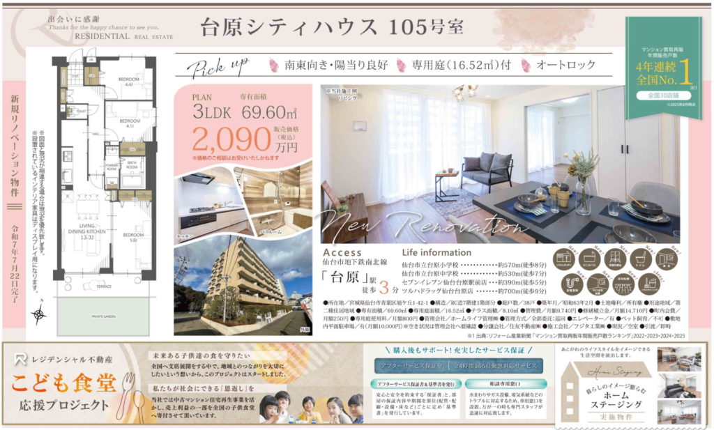 【旭ヶ丘】台原シティハウス 3LDK 2,090万円