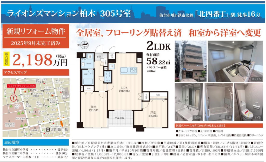 【柏木】ライオンズマンション柏木 2LDK 2,198万円