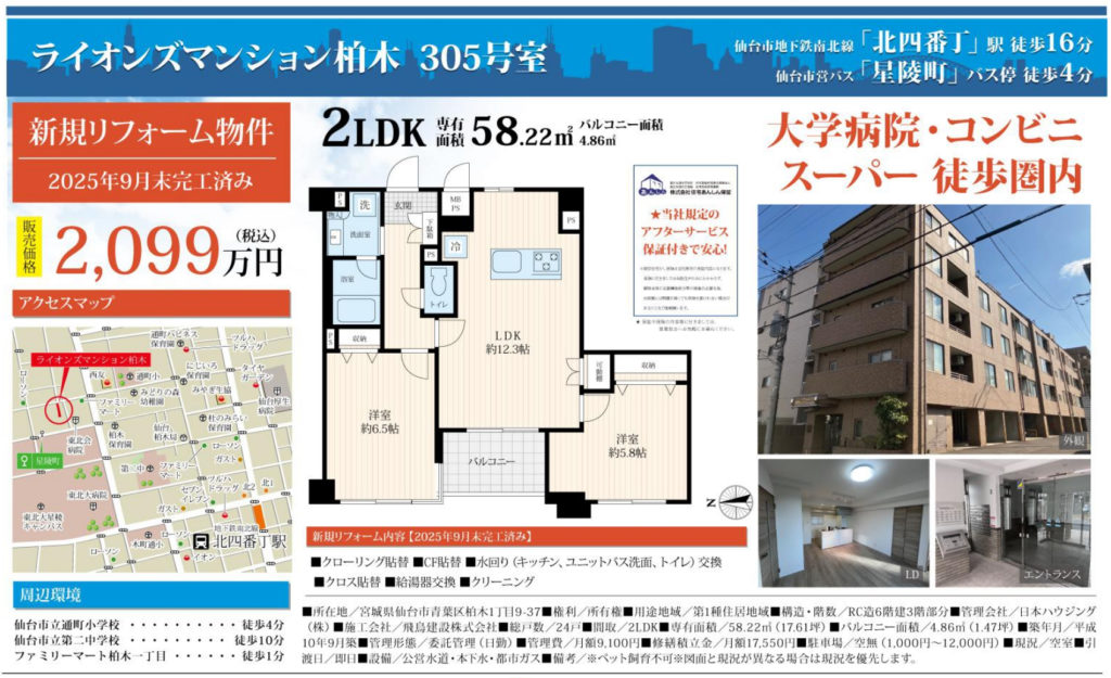 【柏木】ライオンズマンション柏木 2LDK 2,099万円