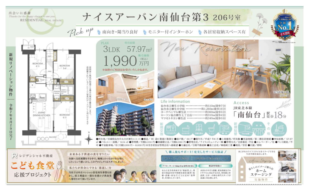 リノベーション物件!角住戸!仙台駅へ徒歩9分♪ 物件概要