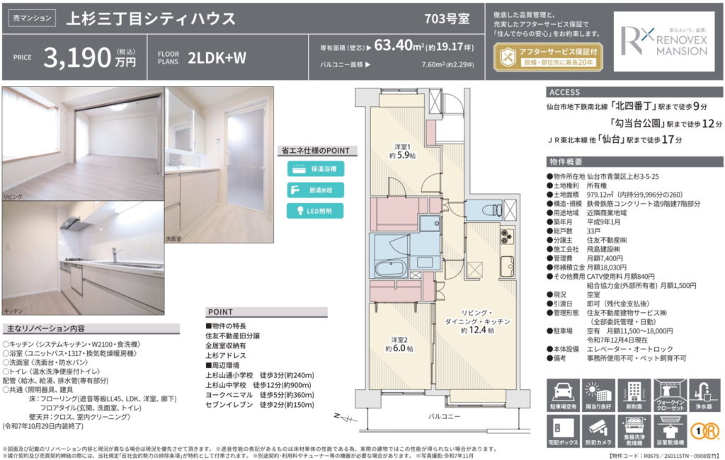 【上杉】上杉三丁目シティハウス 2LDK 3,190万円