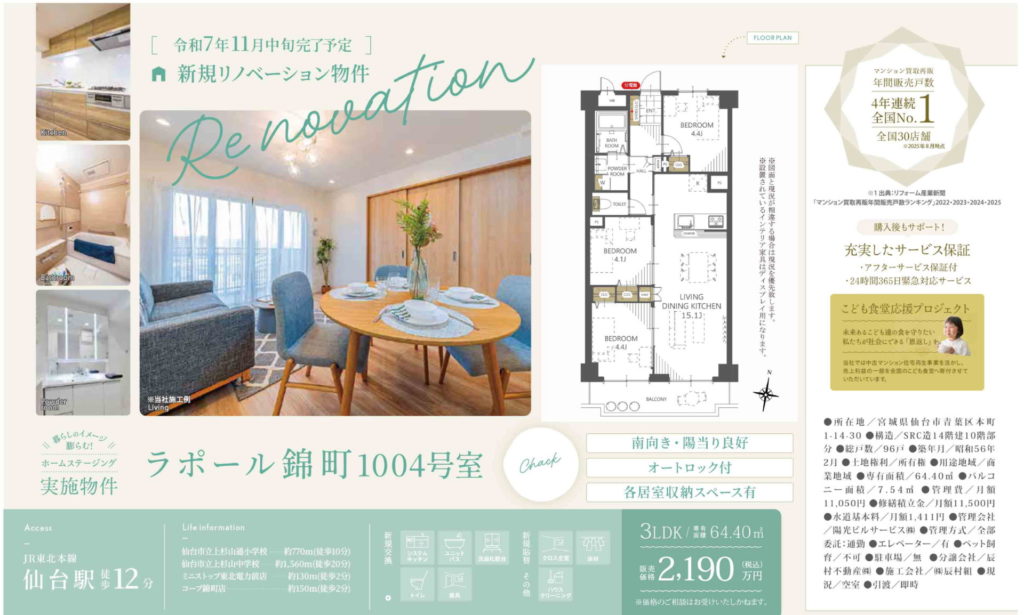 リノベーション物件!仙台駅へ徒歩12分♪
