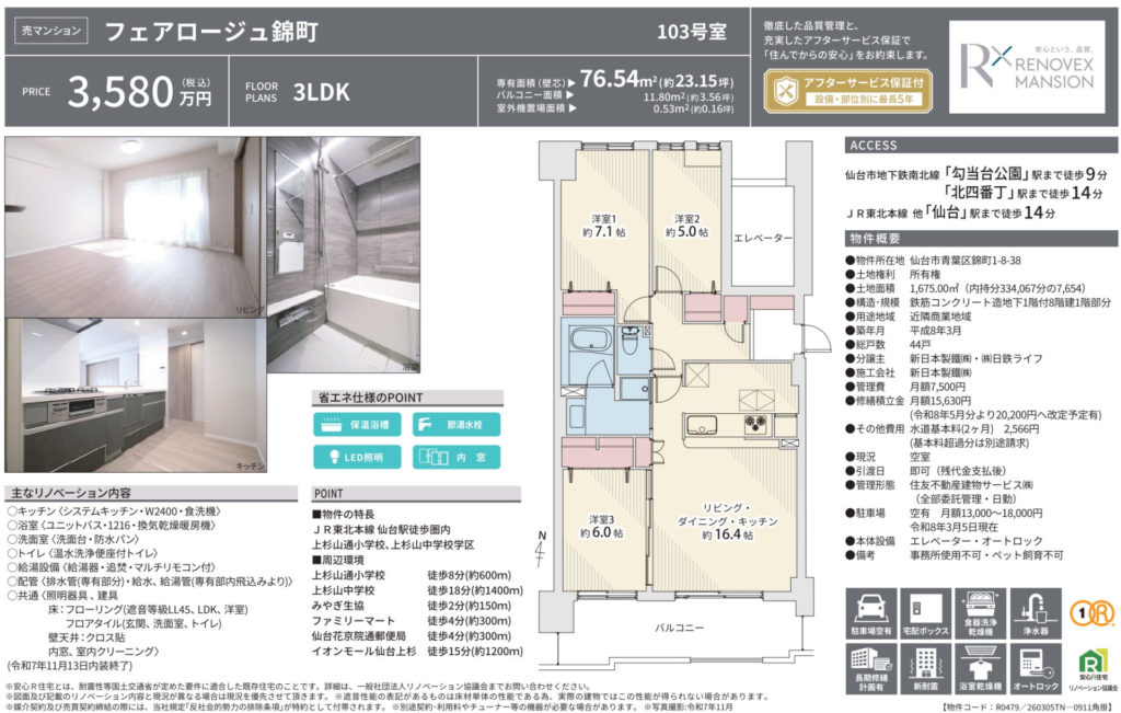 【宮千代】セレーノ宮城野 3LDK 3,199万円