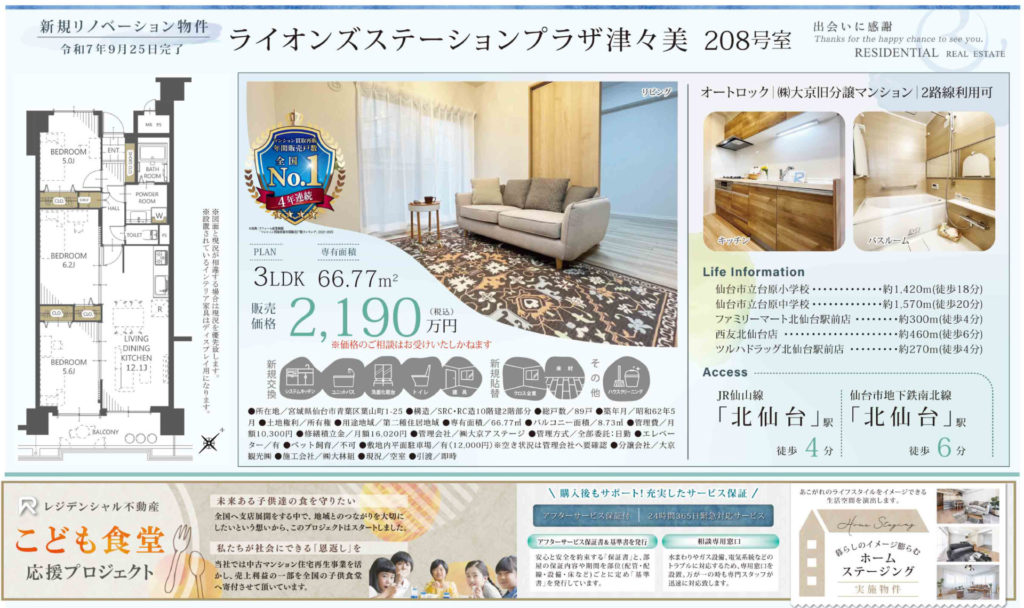 リノベーション物件!北仙台駅へ徒歩4分♪