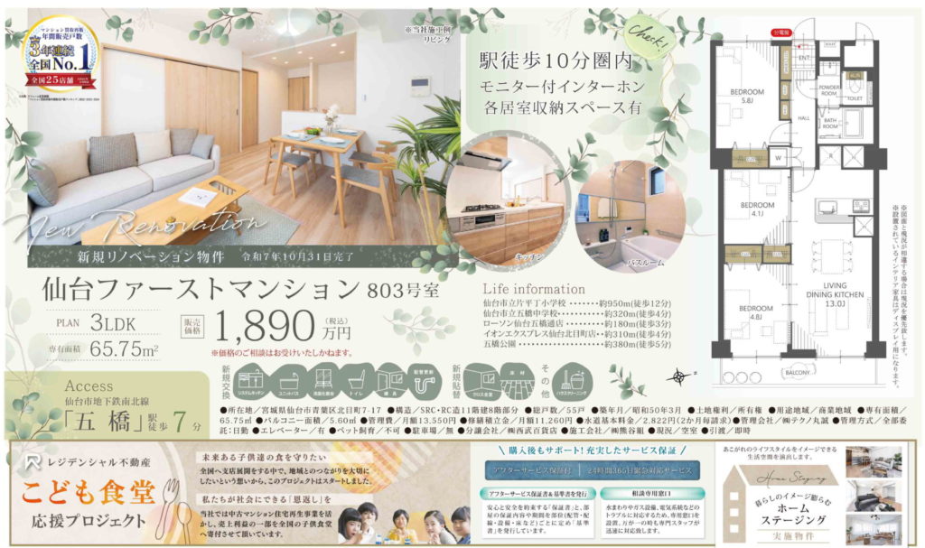 【北目町】仙台ファーストマンション 3LDK 1,890万円