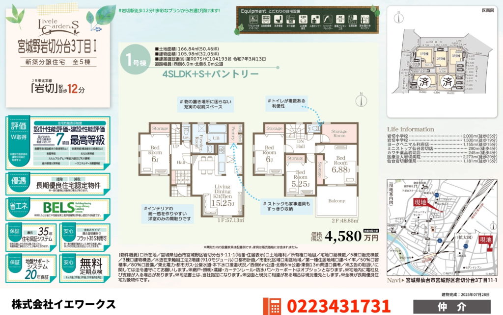 【岩切】新築一戸建て 4SLDK 1号棟 4,480万円