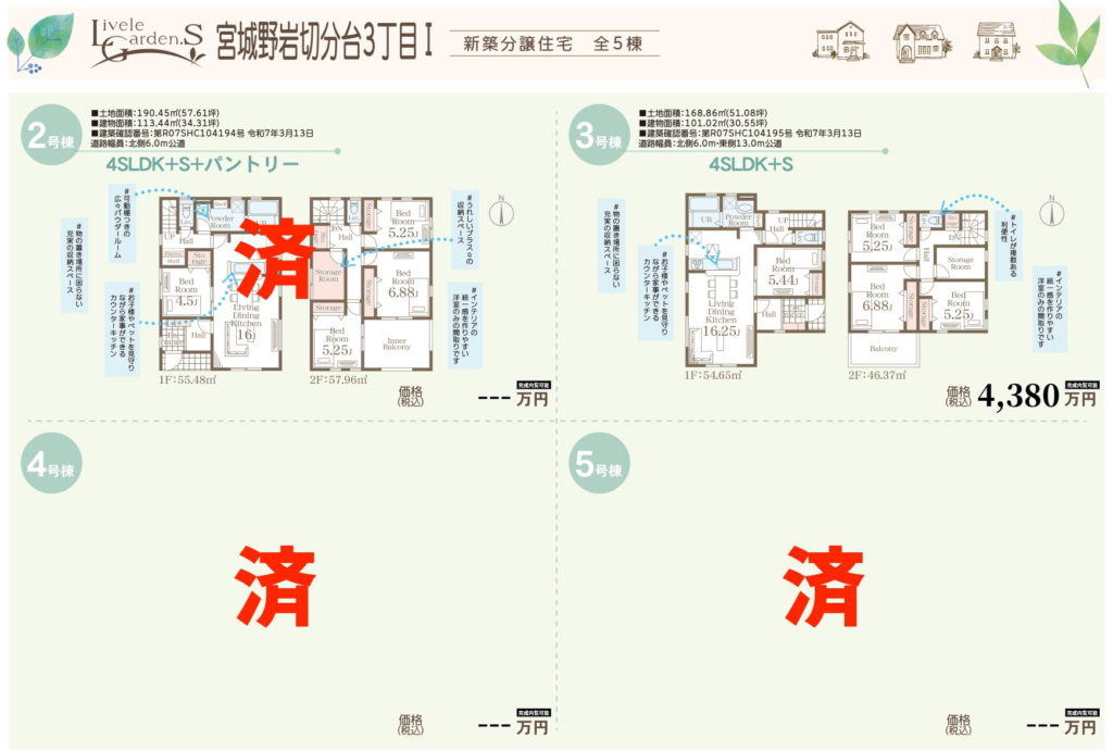 【岩切】新築一戸建て 4SLDK 3号棟 4,380万円