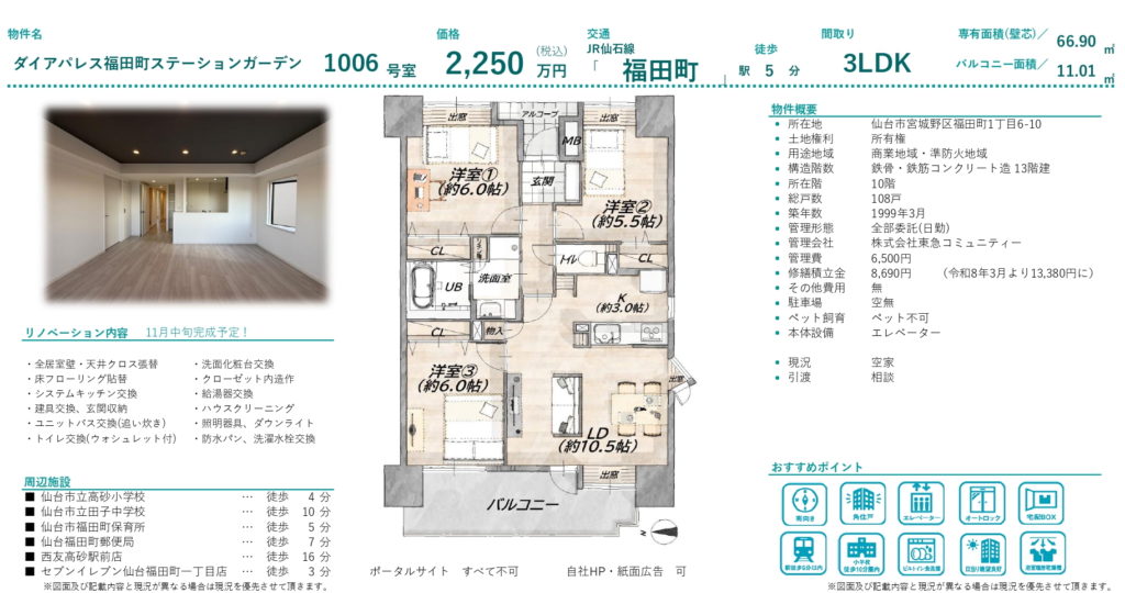【福田町】ダイアパレス福田町ステーションガーデン 3LDK 2,250万円