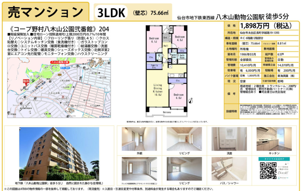 リノベーション物件!八木山動物公園駅へ徒歩5分♪