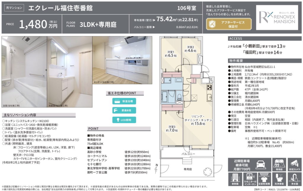 【仙石】エクレール福住壱番館 3LDK 1,480万円