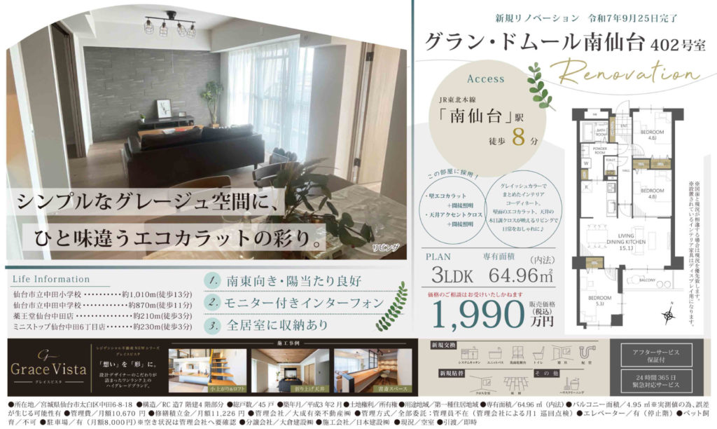 リノベーション物件!南仙台駅へ徒歩8分♪