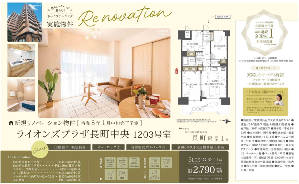 リノベーション物件!長町駅へ徒歩1分♪