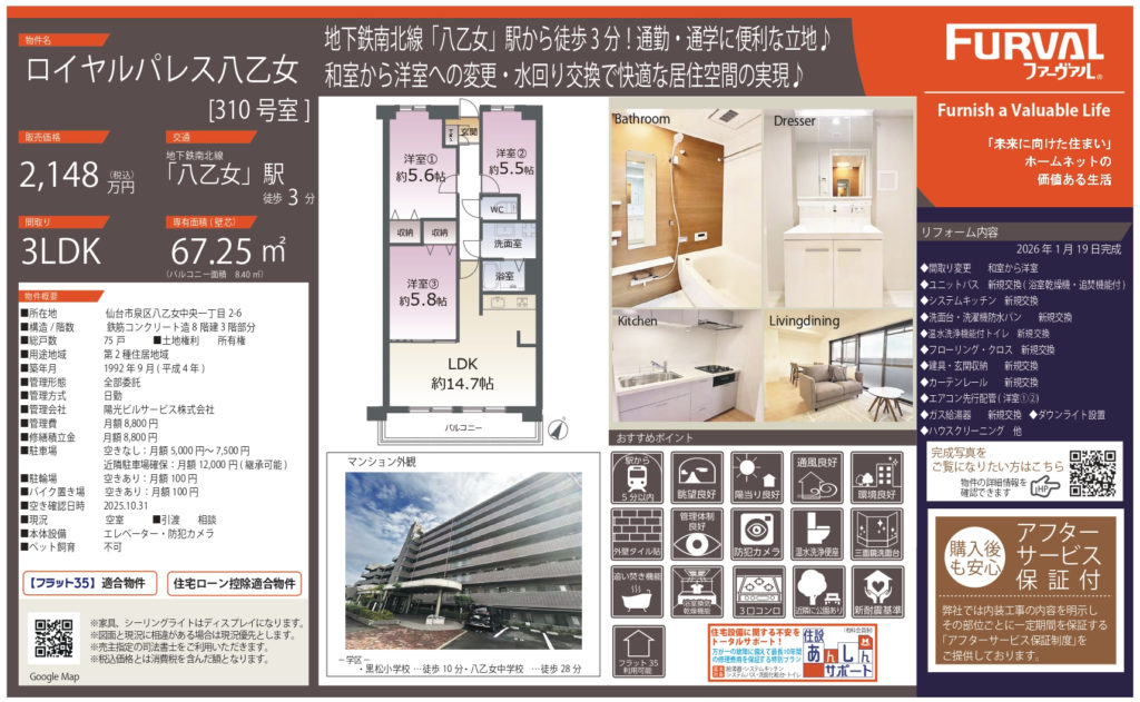 【八乙女中央】ロイヤルパレス八乙女 3LDK 2,148万円