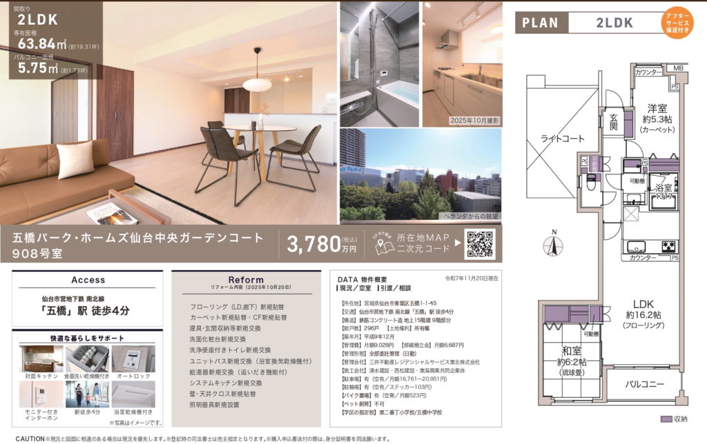 【五橋】五橋パーク・ホームズ仙台中央ガーデンコート 2LDK 3,780万円