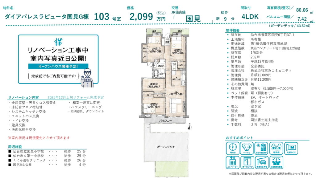 【国見】ダイアパレスラピュータ国見G棟 4LDK 2,099万円