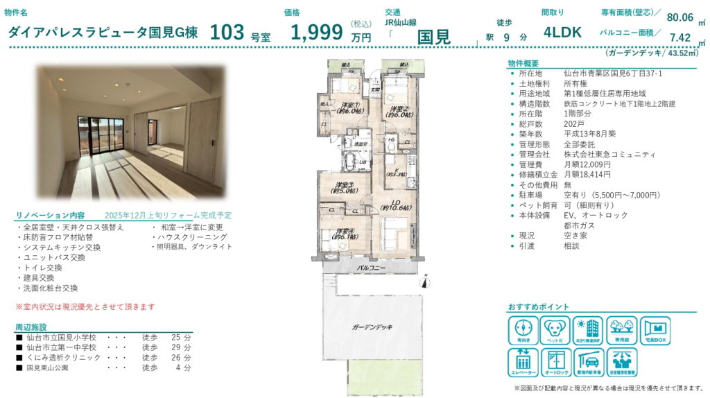 【国見】ダイアパレスラピュータ国見G棟 4LDK 1,999万円