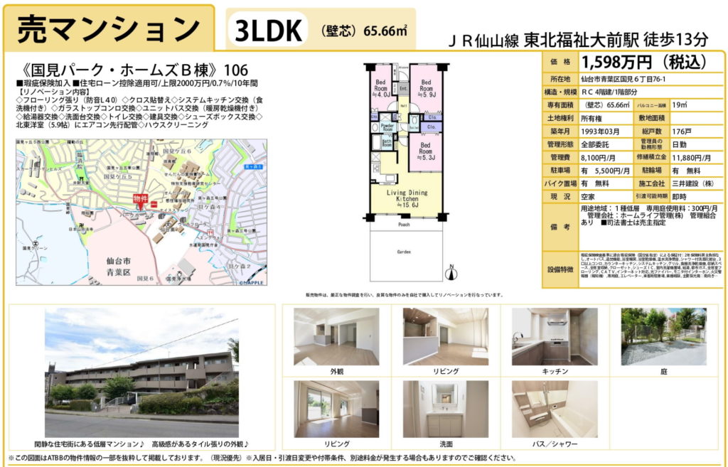 【国見】国見パーク・ホームズB棟 3LDK 1,598万円