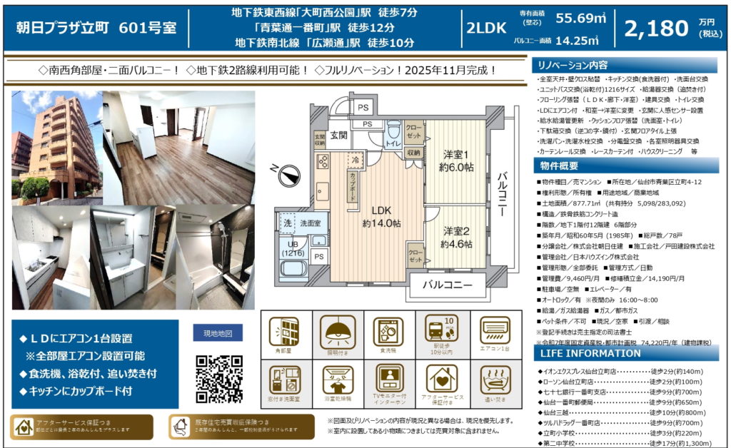 【立町】朝日プラザ立町 2LDK 2,180万円