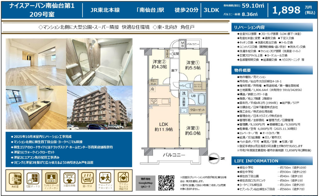 【柳生】ナイスアーバン南仙台第一 3LDK 1,898万円