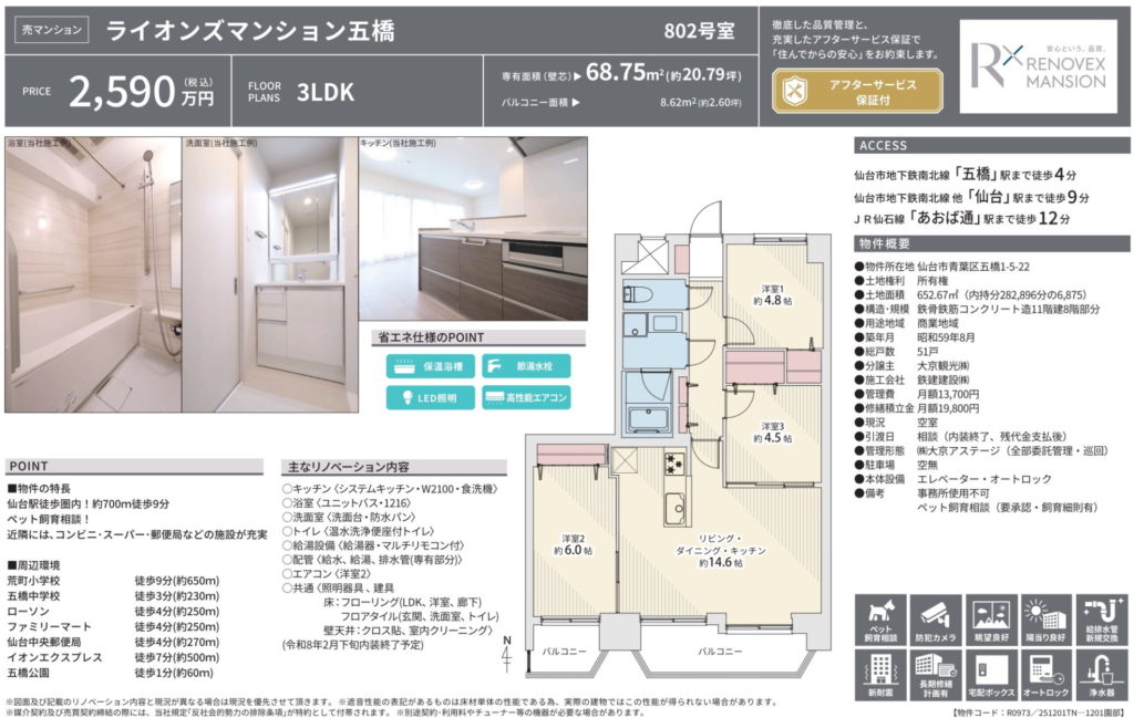 【五橋】ライオンズマンション五橋 3LDK 2,590万円