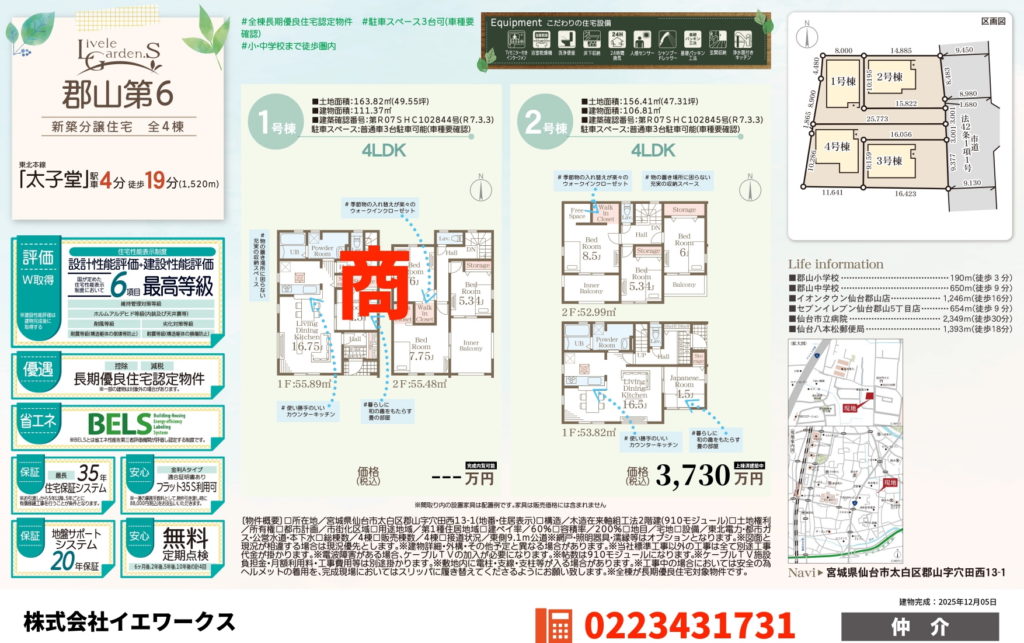 【郡山】新築一戸建て 4LDK 2号棟 3,730万円