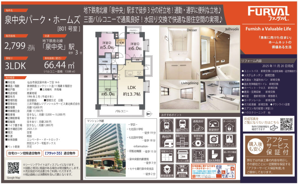リノベーション物件!角住戸!泉中央駅へ徒歩3分♪