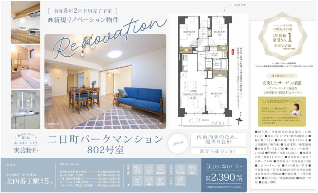 リノベーション物件!角住戸・ペット飼育可!宮城野原駅へ徒歩10分♪ 物件概要 写真