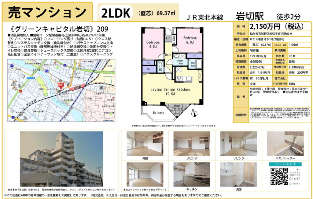 【岩切】グリーンキャピタル岩切 2LDK 2,150万円