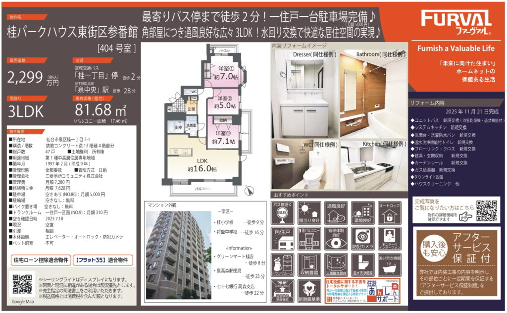 仙台ゼロ不動産【新寺】シエリア仙台新寺 3LDK 【ご成約となりました♪】【仲介手数料無料対象】