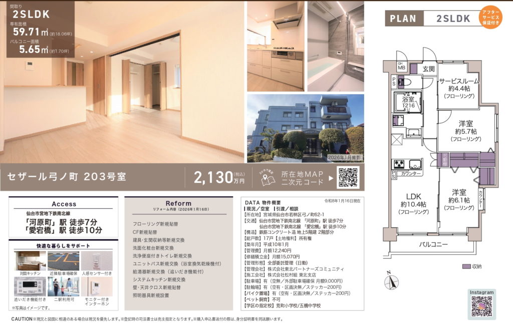 【弓ノ町】セザール弓ノ町 2SLDK 2,130万円
