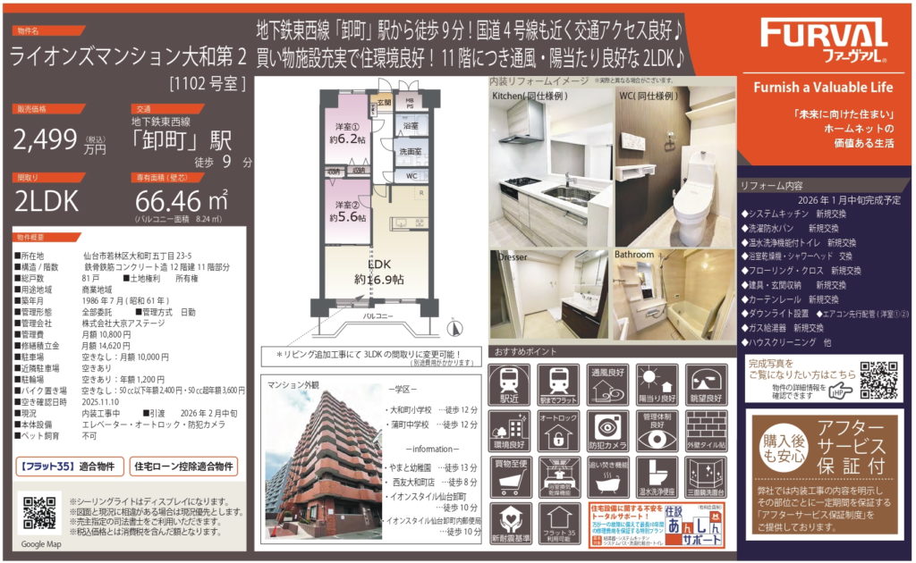 リノベーション物件!卸町駅へ徒歩9分♪