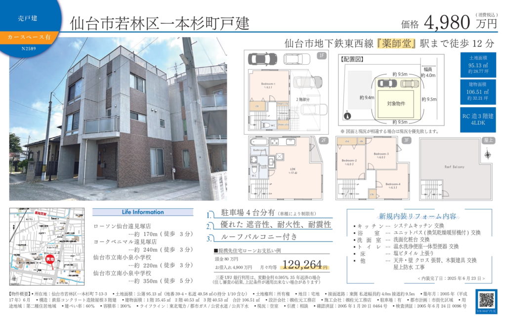 【茂庭】新築一戸建て 4LDK 2号棟 2,380万円