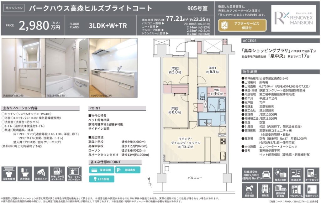 【高森】パークハウス高森ヒルズブライトコート 3LDK 2,980万円