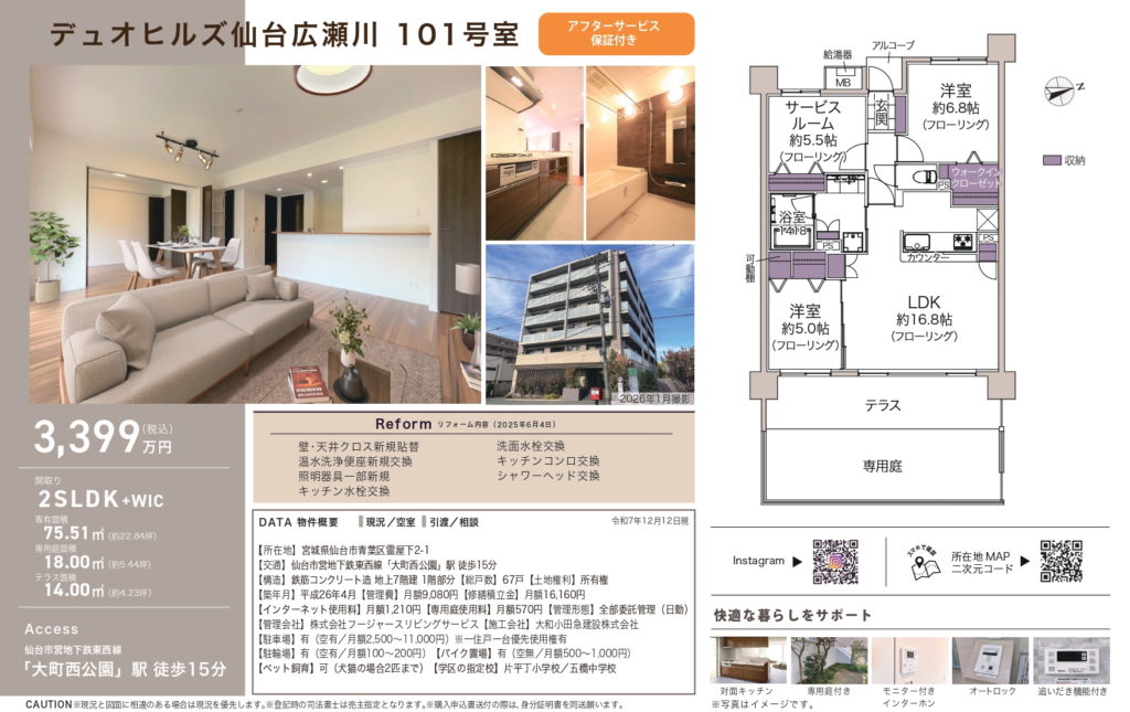 リノベーション物件!ペット飼育可!陸前原ノ町駅へ徒歩6分♪ 物件概要