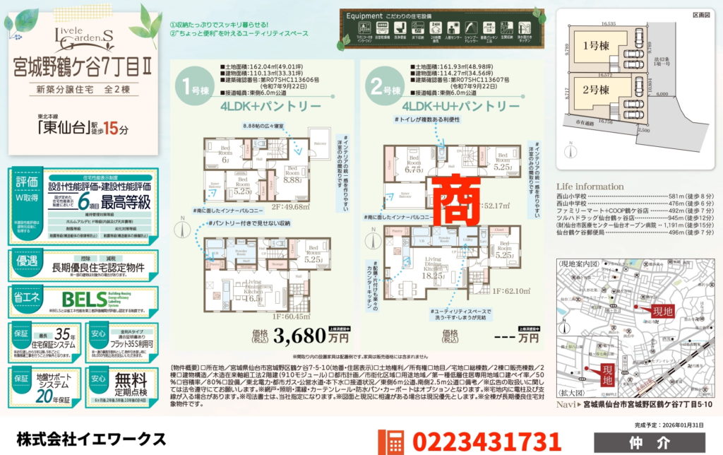 【鶴ヶ谷】新築一戸建て 4LDK 1号棟 3,680万円