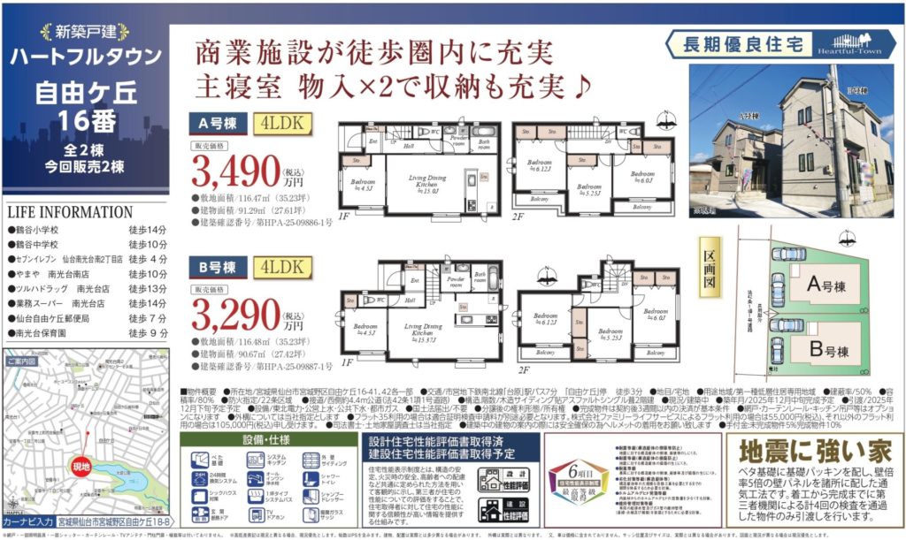 【自由ヶ丘】新築一戸建て 4LDK A号棟 3,490万円 B号棟 3,290万円