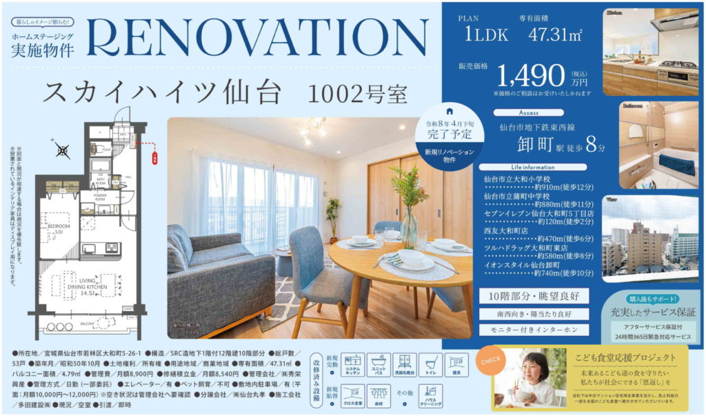 【大和町】スカイハイツ仙台 1LDK 1,490万円