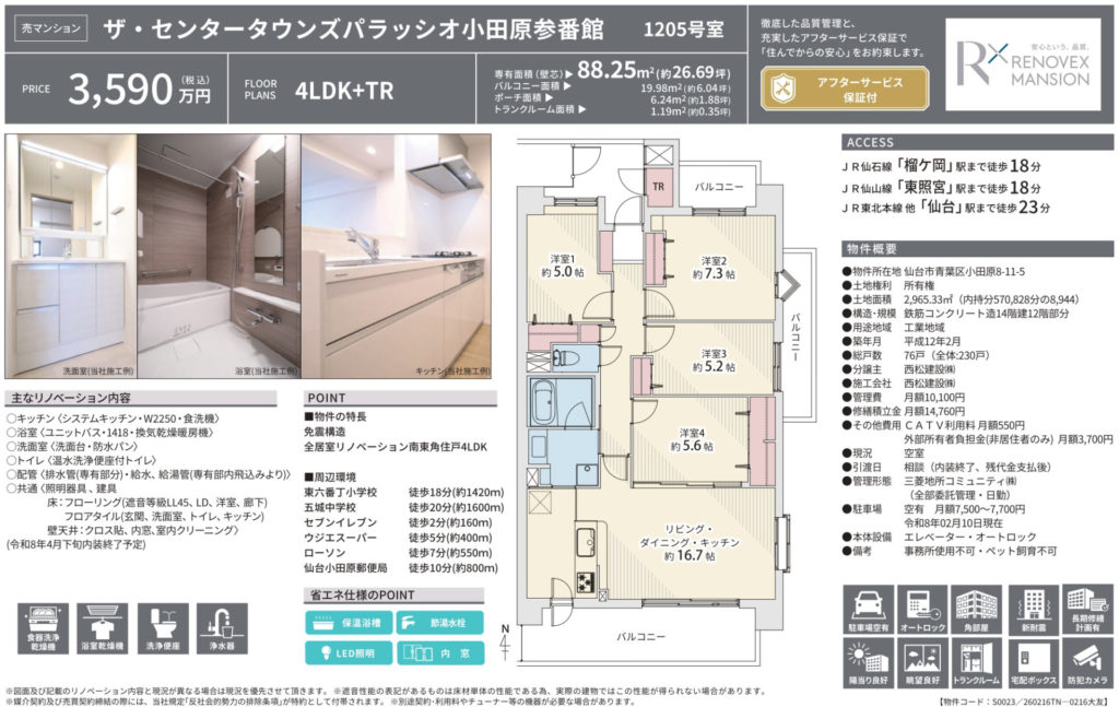 【小田原】ザ・センタータウンズパラッシオ小田原参番館 4LDK 3,590万円