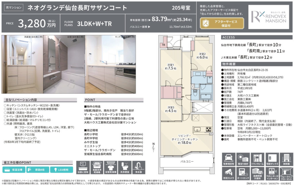 【長町】ネオグランデ仙台長町サザンコート 3LDK 3,280万円