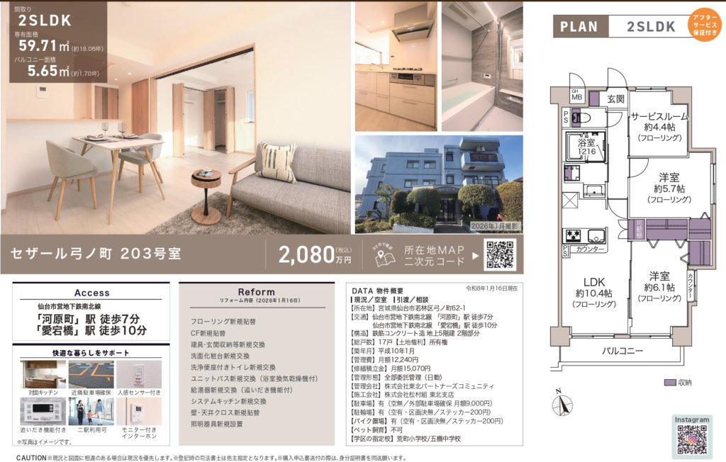 【弓ノ町】セザール弓ノ町 2SLDK 2,080万円