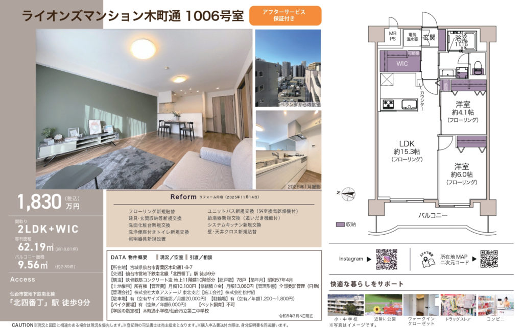 リノベーション物件!角住戸!仙台駅へ徒歩4分♪ 物件概要