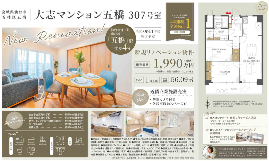 リノベーション物件!五橋駅へ徒歩4分♪